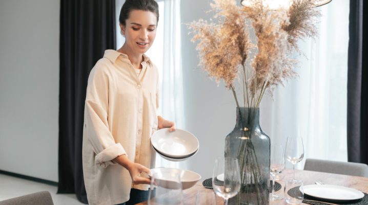 Chiar și într-un spațiu mic, detaliile fac diferența. O față de masă din materiale fine, farfurii atent alese, pahare elegante și un mic aranjament floral transformă orice cină într-o experiență deosebită. Alege obiecte decorative discrete, pentru a nu încărca vizual încăperea.